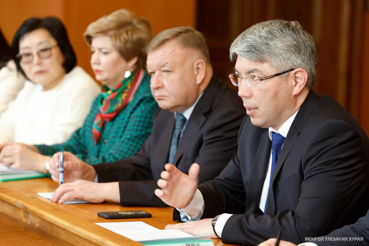 Уулзалтын эхэнд УИХ-ын дэд дарга Б.Пүрэвдорж, манай улсын мөнхийн хөрш ОХУ, тэр дундаа монголчууд бидэнтэй соёл, уламжлал, зан заншил, бичиг үсэг нэн ойр Бүгд найрамдах Буриад Улсын Тэргүүн Засгийн газрынхаа өргөн бүрэлдэхүүний хамтаар харилцаа, хамтын ажиллагааны асуудлаар санал солилцохоор хүрэлцэн ирсэнд талархал илэрхийлье. 2024 онд манай улсад тохиолдсон зудын хүндрэл бэрхшээлийг даван туулахад зориулан хүмүүнлэгийн тусламж үзүүлсэнд танд дахин талархал илэрхийлье. Мөн ОХУ-ын Ерөнхийлөгч В.В.Путины Монгол Улсад хийсэн албан ёсны айлчлал нь хоёр улсын иж бүрэн стратегийн түншлэл, түүний дотор бүс нутгийн хамтын ажиллагааг бэхжүүлэхэд чухал ач холбогдолтой болсон гэж үзэж байна гэв.