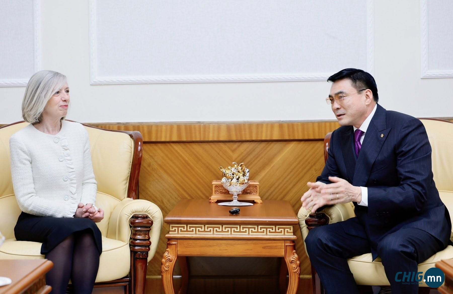 Өнөөдөр \2026.04.13\ УИХ-ын Гишүүн, Засгийн Газрын гишүүн, ХЗДХ-ийн сайд С.Амарсайхан Англи улсын “EF EFEKTA” компанийн Засгийн газрын харилцаа, судалгаа хариуцсан ерөнхийлөгч Др Стефания Жианини, EF EFEKTA боловсролын Группийн Тэргүүн дэд ерөнхийлөгч Саранжит Сангар, EF EFEKTA боловсролын группийн Сургалт хариуцсан захирал Др Кристофер МакКормик, Монгол дахь албан төлөөлөгч Т.Хишигжаргал нарыг хүлээн авч уулзлаа. Уулзалтаар Хууль зүйн салбарын 30 гаруй мянган албан хаагч, ДХИС-ийн 4000 гаруй оюутныг хиймэл оюун ухаанд суурилсан онлайн англи хэлний төсөлд хамруулж, ойрын хугацаанд эхлүүлэх саналыг УИХ-ын Гишүүн, Засгийн Газрын гишүүн, ХЗДХ-ийн сайд С.Амарсайхан албан ёсоор тавилаа.