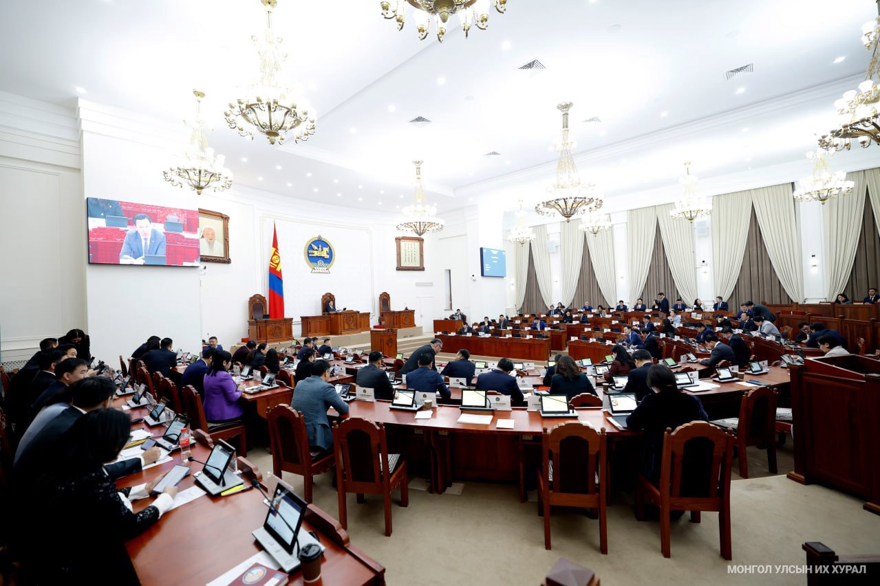 Улсын Их Хурлын 2024 оны намрын ээлжит чуулганы өнөөдрийн (2024.12.13) нэгдсэн хуралдаан 10 цаг 05 минутад гишүүдийн 52.4 хувийн ирцтэй эхэлж, Улс төрийн намын тухай хууль /Шинэчилсэн найруулга/-ийг дагаж мөрдөх журмын тухай хуульд өөрчлөлт оруулах тухай хуулийн төслийн эцсийн хэлэлцүүлгийг хийж, эцэслэн баталлаа.
