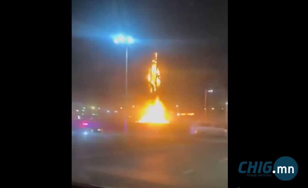"Баянбүрдийн тойрог дахь баганат хөшөө шатаж байна" гэсэн мэдээлэл, видео бичлэг олон нийтийн сүлжээнд цацагдаад буй.