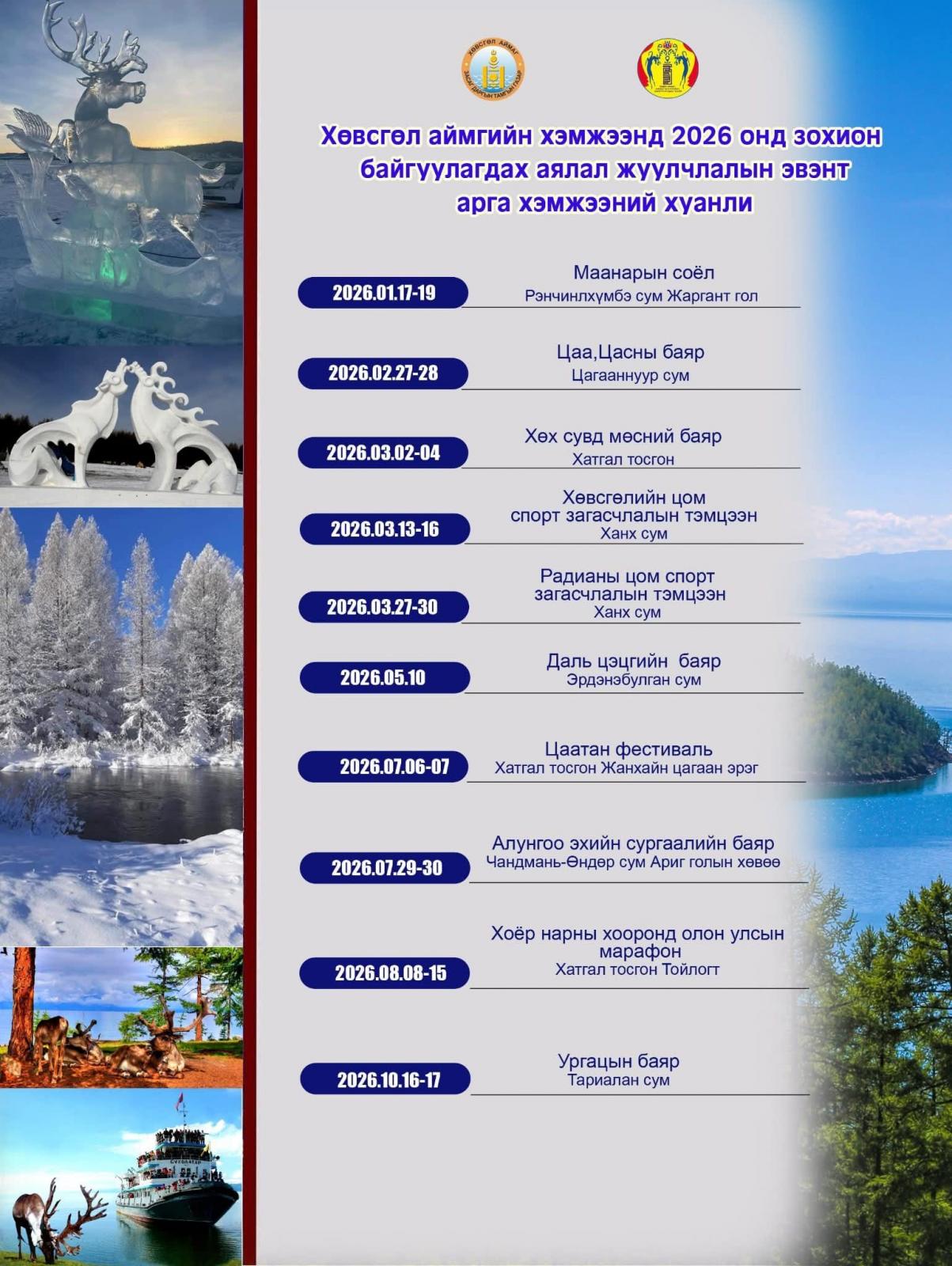 Монголын Щвейцарь гэгддэг Хөвсгөл аймаг 2026 оны эвентүүдээ зарлалаа.