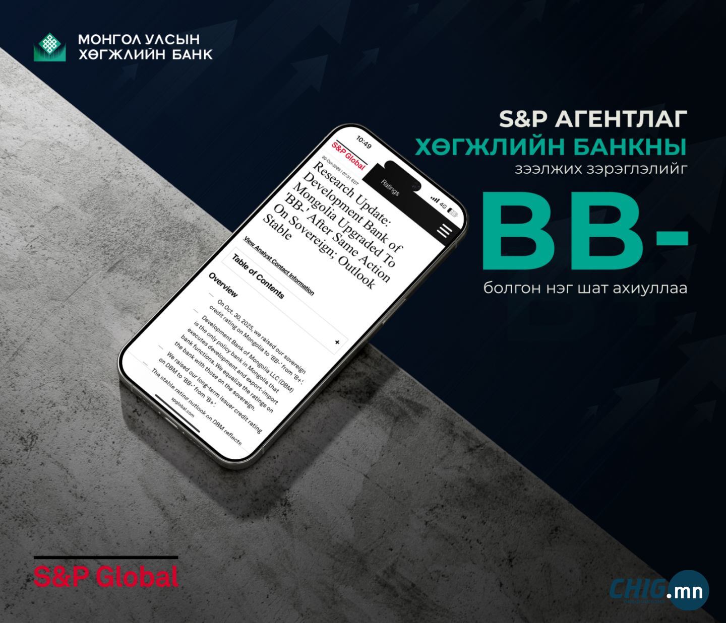 | S&P агентлаг Хөгжлийн банкны зээлжих зэрэглэлийг BB- болгон нэг шат ахиуллаа |