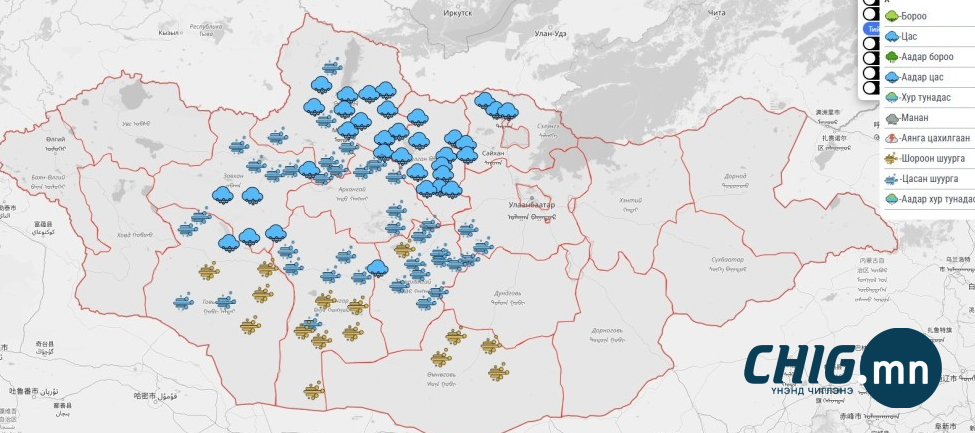 | Цас орж, шуурга шуурч буй аймаг сумдын мэдээлэл |