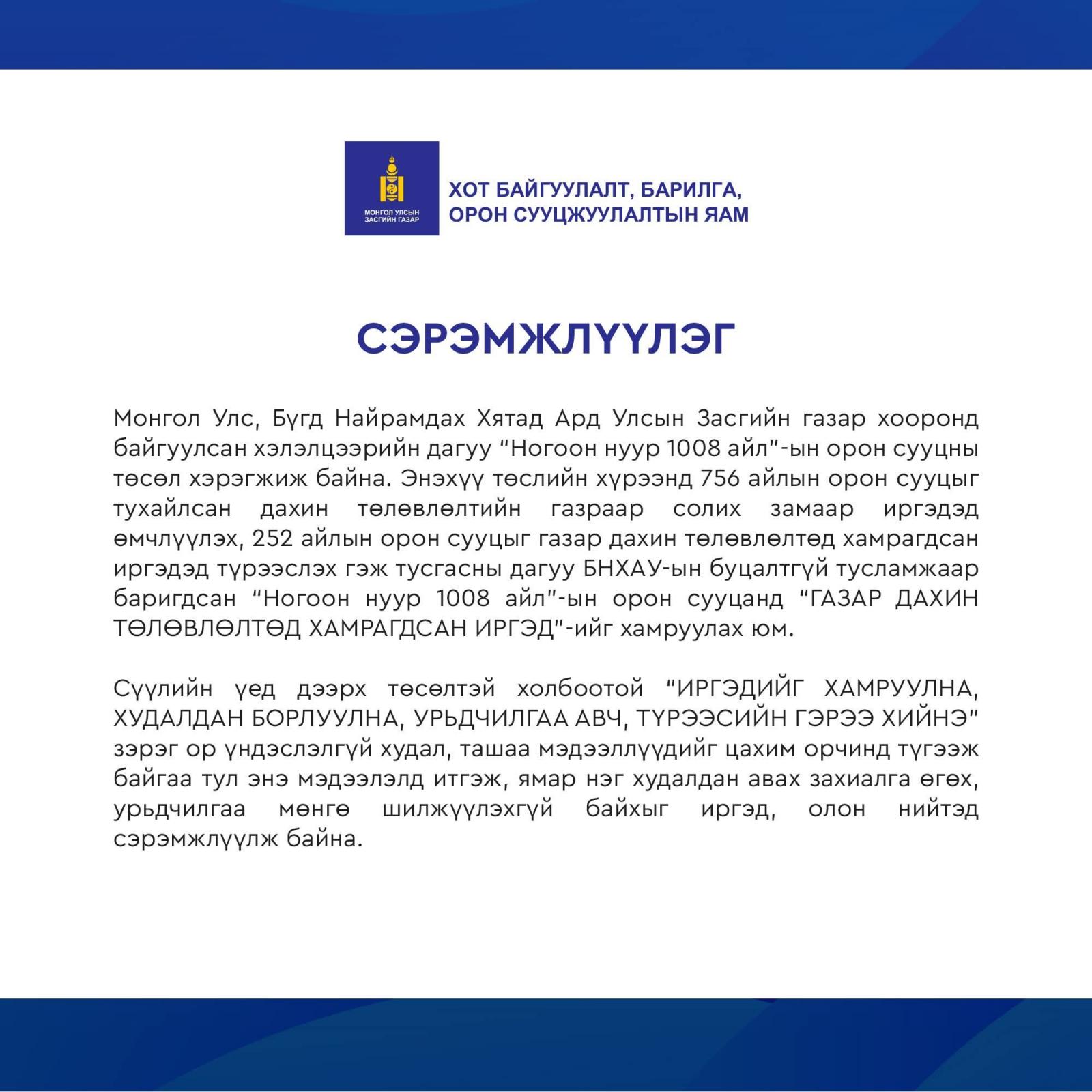 | Сэрэмжлүүлэг: "Ногоон нуур 1008 айл" төсөлд оруулна хэмээн залилж байна |