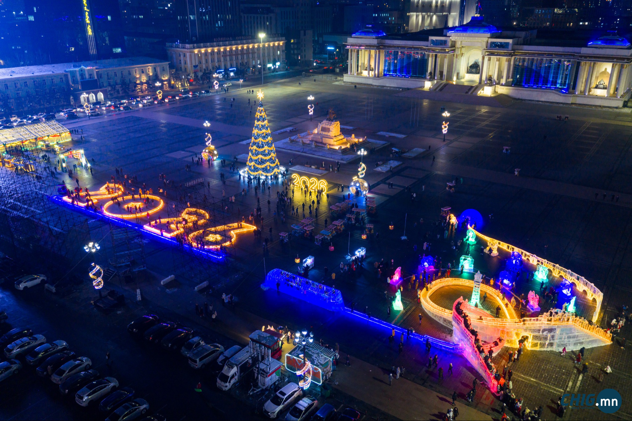 Нийслэлийн шинэ жилийн баярын үйл ажиллагааг зохион байгуулах ажлын хүрээнд 2025 оны 12 дугаар сарын 31-ний өдөр төв талбайд “Улаанбаатарын мөнгөн шөнө” баярын цэнгүүн болно. Цэнгүүний дараа 18 чиглэлд их багтаамжийн 18 автобус Сүхбаатарын талбайн баруун, зүүн болон урд зогсоол буюу зурагт тэмдэглэсэн “А”, “B”, “С” зогсоолоос суурьшлын цэгүүд рүү үнэ төлбөргүй үйлчлэхээр төлөвлөөд байна.