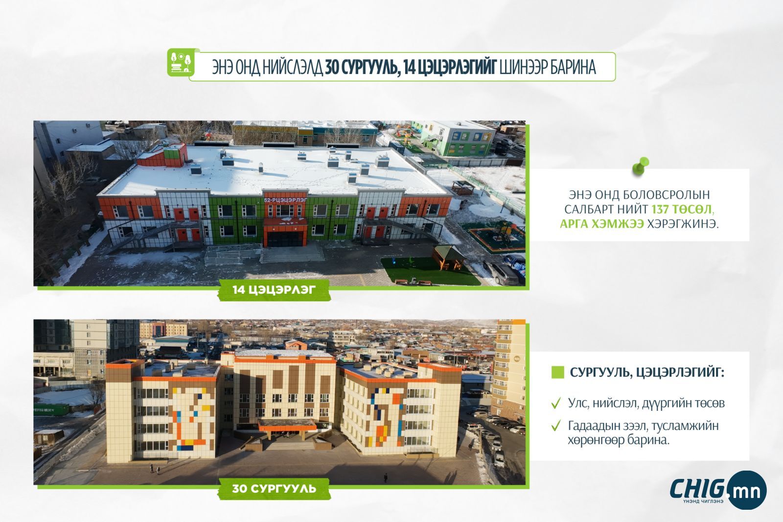 | Энэ онд нийслэлд 30 сургууль, 14 цэцэрлэгийг шинээр барина |