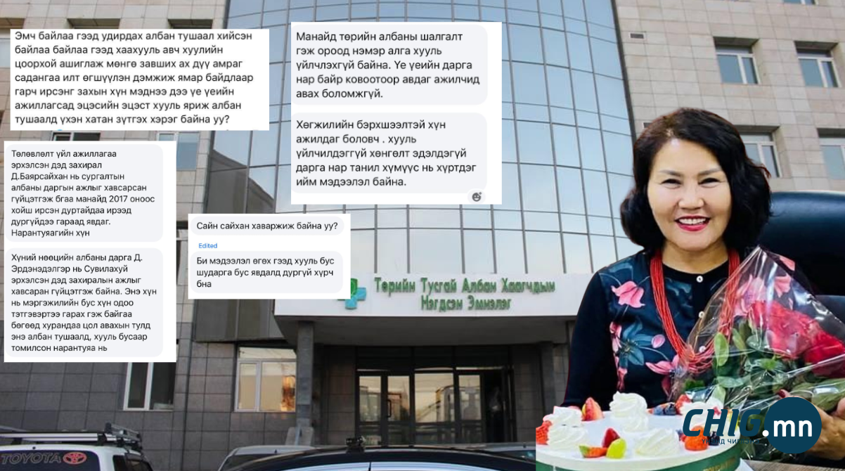 Дээрх мэдээлэл нийтлэгдсэний дараа тус эмнэлгийн зарим эмч, ажилтнууд манай редакцтай холбогдож, дотоод нөхцөл байдлын талаар нэмэлт мэдээлэл өгсөн юм. Тэдний мэдээлснээр, эмнэлгийн захирлын албан тушаалыг түр орлон гүйцэтгэж буй Н.Нарантуяатай холбоотойгоор ажилтнуудын дунд “шүгэл үлээх” нөхцөл байдал үүссэн байна.