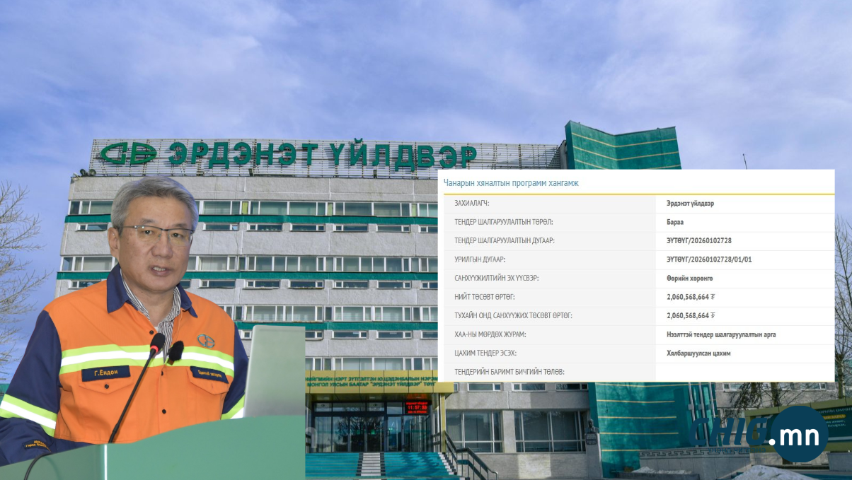 Эрдэнэт үйлдвэр 2 тэрбум төгрөгөөр “чанарын хяналтын программ хангамж” худалдан авахаар тендер зарлажээ. Уг программ хангамж нийлүүлэхэд 2,060,568,664 буюу 2 тэрбум төгрөг зарцуулахаар төлөвлөсөн бөгөөд санхүүжилтийг өөрийн хөрөнгийн төсвөөс гаргах аж.