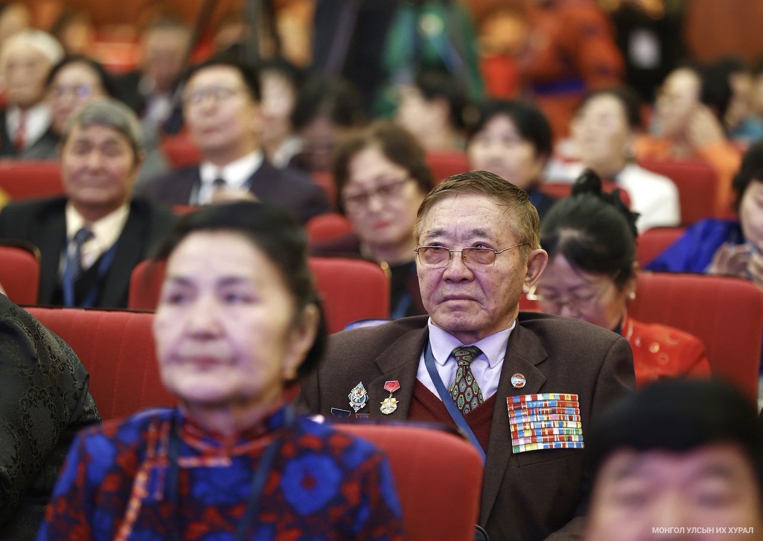 Эх орныхоо өнцөг булан бүрээс мянга мянган нөхдөө төлөөлөн энэ танхимд хүрэлцэн ирсэн эрхэм хүндэт ахмадууд Та бүхэндээ энэ өдрийн мэндийг хүргэж, эрүүл энх, сайн сайхан бүхнийг хүсэн ерөөе. Та бүхэндээ айлчлан ирсэн шинэ оны мэндийг дэвшүүлж, 2025 ондоо эрүүл энх, аз жаргалаар дүүрэн байхыг Улсын Их Хурлын нийт гишүүдийн нэрийн өмнөөс хүсэн ерөөж мэндчилж байна. Ахмадууд хэзээний эртэч, ажил хэрэгч зангаараа энэ удаагийн Үндэсний чуулганаа оны эхэнд хийх саналаа ирүүлснийг Улсын Их Хурлын даргын зөвлөл баяртай хүлээн авч, дэмжсэнээр Та бид өнөөдөр энэхүү танхимд чуулж байна.