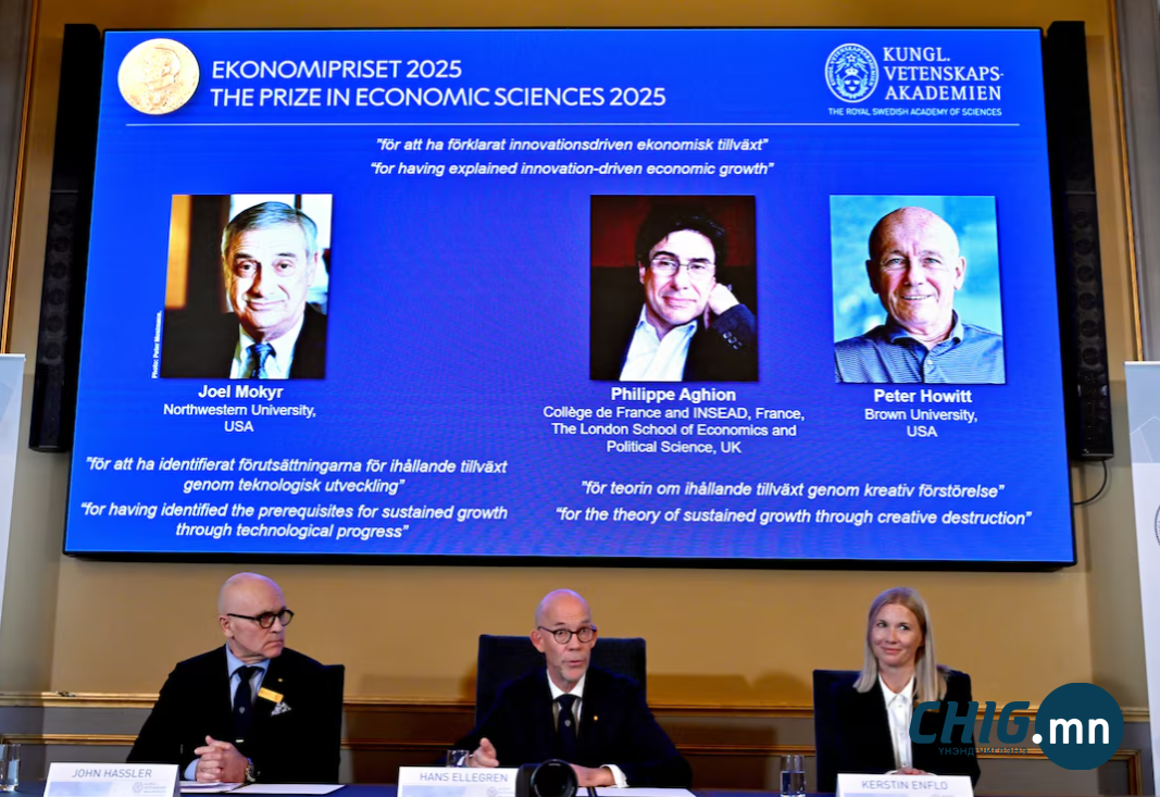 2025 оны Нобелийн эдийн засгийн шагналын эзэд тодорлоо. Энэ жилийн шагналыг инновац, технологийн дэвшил, бүтээлч сүйрэл (“creative destruction”) болон эдийн засгийн өсөлтийн уялдаа холбоог судалсан Жоэл Мокир, Филипп Агион, Питер Ховитт нар хүртжээ.